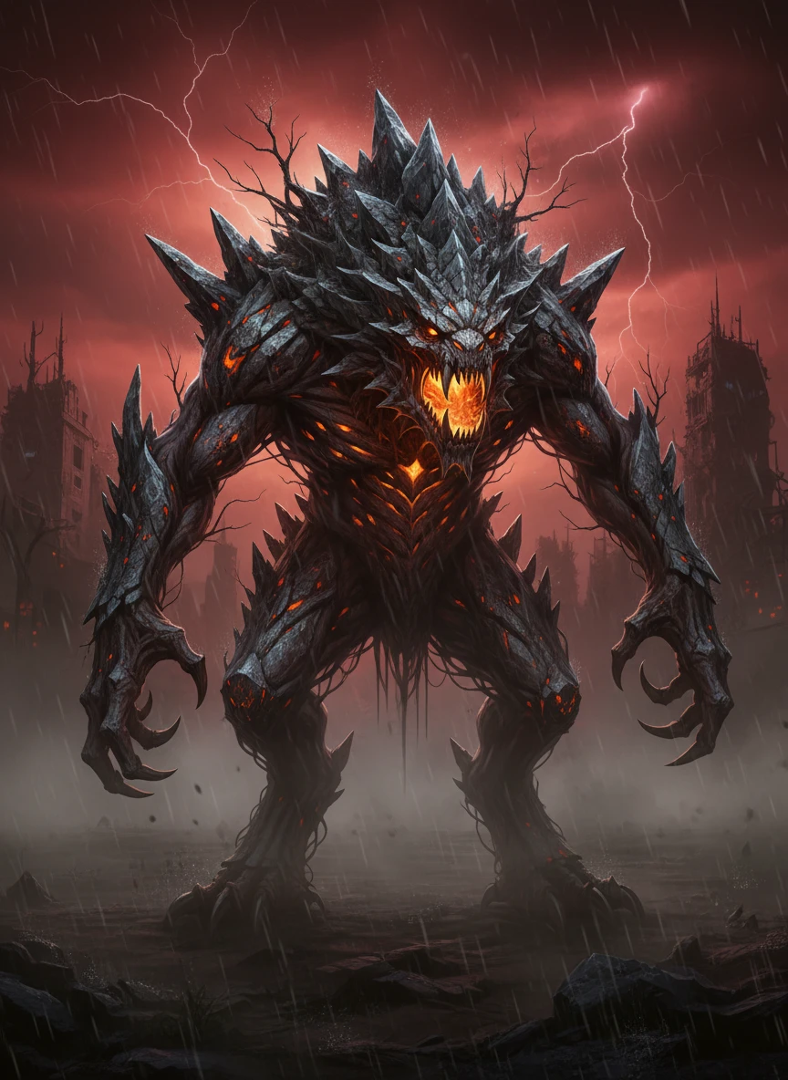 A massive feral monster with raw animal aggression, muscular anatomy, torn skin and scars, high detail fur and flesh textures, cinematic rim lighting, epic scale comparison, realistic motion blur, dramatic environment lighting, photoreal monster design, ultra sharp focus