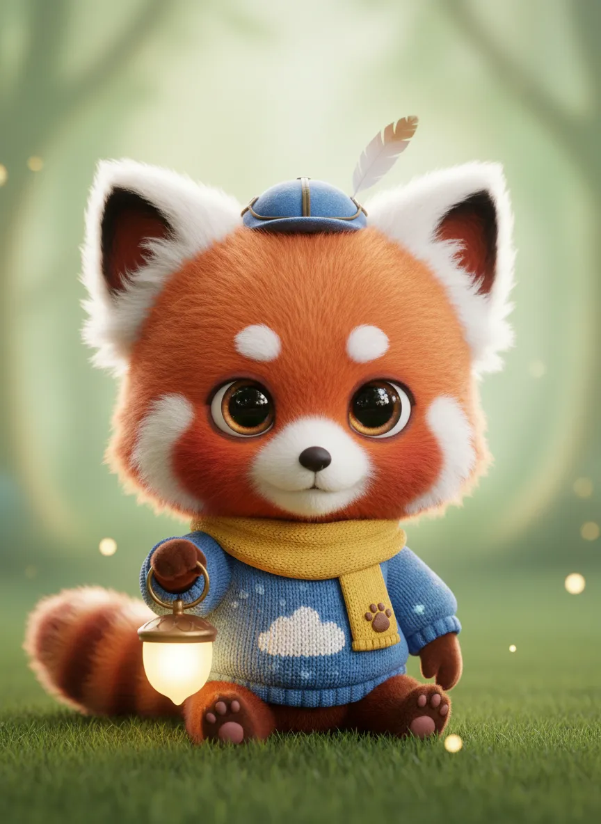 Generate a random cute 3D character in a stylized, big-headed design inspired by anthropomorphic animals. Characters may have ears, tails, or fur patterns, maintaining the 1:3 proportion. Render in ultra-realistic 3D with soft lighting, smooth fur/fabric textures, and gentle shadows. Faces are expressive with large detailed eyes and small noses. Clothing and accessories vary while matching the cute aesthetic. Background: soft and minimal. Mood: charming, playful, and animal-inspired.
