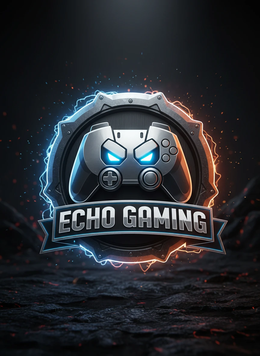 A bold gaming emblem designed with a Realistic Discord logo generator style, featuring a polished chrome mascot icon with deep shadows and reflective highlights. The logo sits on a dark textured background with subtle sparks and glowing edges, giving it a competitive esports feel. Sharp lighting emphasizes the metallic structure and realistic depth of the logo. Style: metallic, gaming emblem, dramatic lighting, ultra detailed — NEG: flat design, cartoon blur, grainy texture, low contrast, watermark, messy edges, duplicate shapes