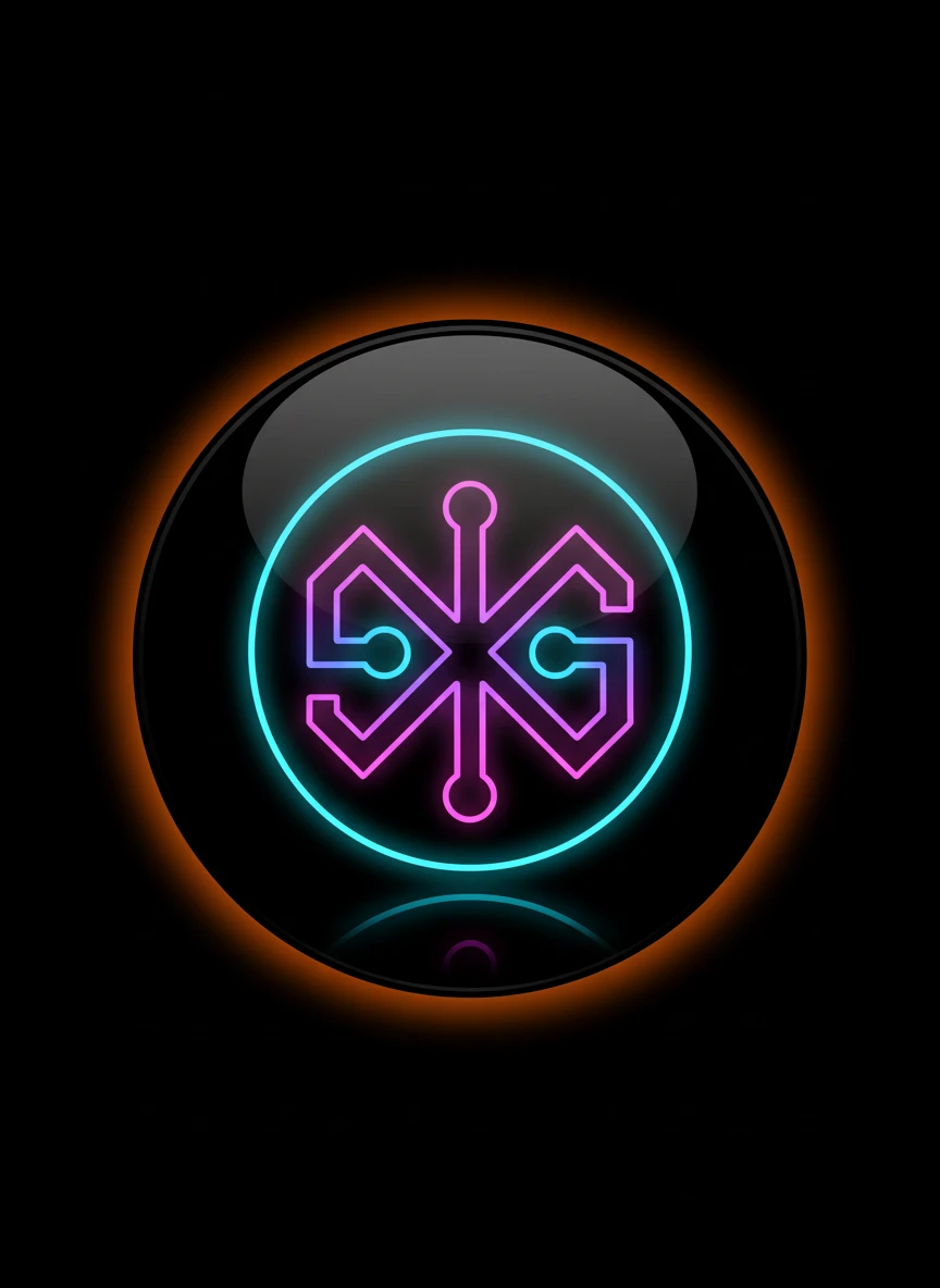 Generate a vibrant cyber-style icon using a Realistic favicon generator design with neon lighting effects. The favicon should display a glowing symbol in the center with subtle reflections and dark background contrast for strong visibility. Ensure the icon is bold and simple enough to remain clear in small favicon dimensions. Use luminous edges and smooth glow transitions. Tags: neon, cyberpunk, glowing, futuristic — NEG: dull lighting, blur, noise, pixelation, watermark, cluttered shapes, overexposed glow
