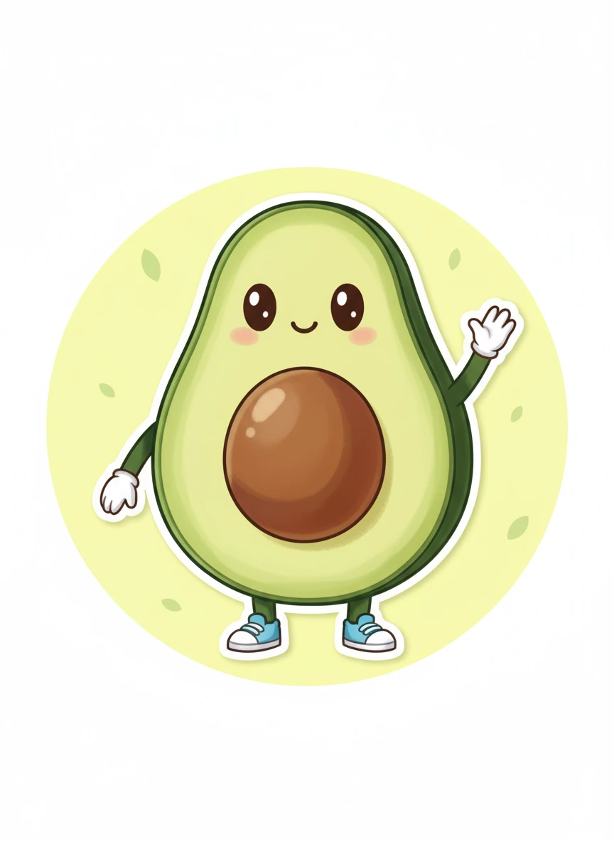 Generate a cute food-themed character sticker using the AI Sticker Generator, turning a simple food item into an expressive mascot. Use soft shading, friendly eyes, and a compact composition. Finish with a smooth die-cut outline for chat sticker use. food mascot, cute, soft shading, sticker — NEG: realistic food texture, greasy shine, complex background, text, noise