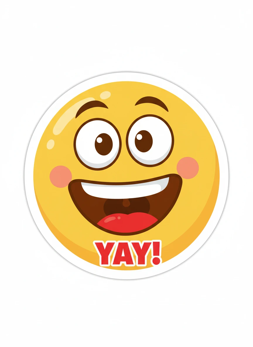 Design an emoji-style reaction sticker with the AI Sticker Generator, focused on a single strong emotion. The face should be centered, exaggerated, and instantly readable. Keep colors clean and add a white sticker border. emoji-style, expressive, simple, flat — NEG: subtle expression, realism, background scenes, fine detail, low saturation