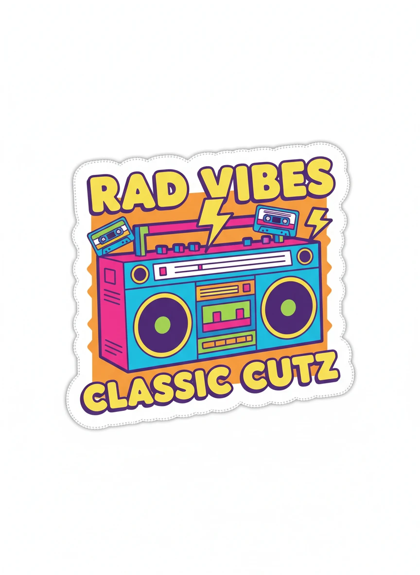 Produce a retro-inspired cartoon sticker using the AI Sticker Generator, influenced by 80s–90s animation aesthetics. Apply punchy colors, simple shading, and nostalgic shapes while keeping the design flat. Add a classic sticker border for authenticity. retro, vintage cartoon, flat, nostalgic — NEG: modern UI style, photorealism, smooth gradients, excessive detail, realism, lens effects