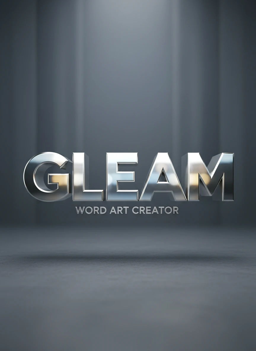 Render a word art generator image where the text appears as polished metallic 3D letters. Lighting should emphasize reflections, depth, and realistic shadows. The background should stay subtle to enhance the dimensional effect. Style: 3D typography, metallic, realistic lighting NEG: flat shading, plastic look, jagged edges, unrealistic reflections, blur, clutter