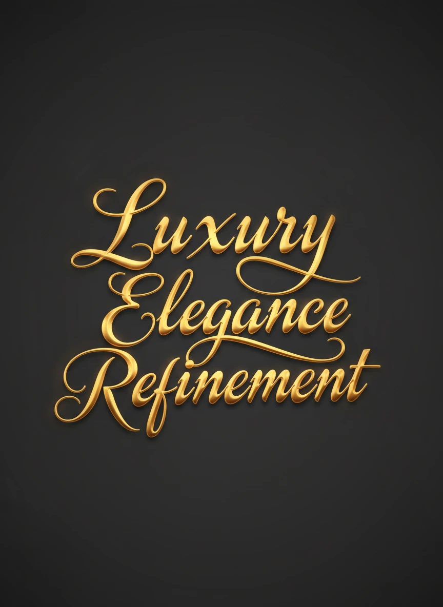 Design a word art generator composition using flowing calligraphic letters in elegant gold tones. The typography should feel luxurious, refined, and smoothly curved, with soft highlights. A dark or neutral background should enhance the premium look. Style: calligraphy, luxury typography, elegant design NEG: rough edges, cheap gold color, harsh lighting, cluttered background, blur, uneven strokes