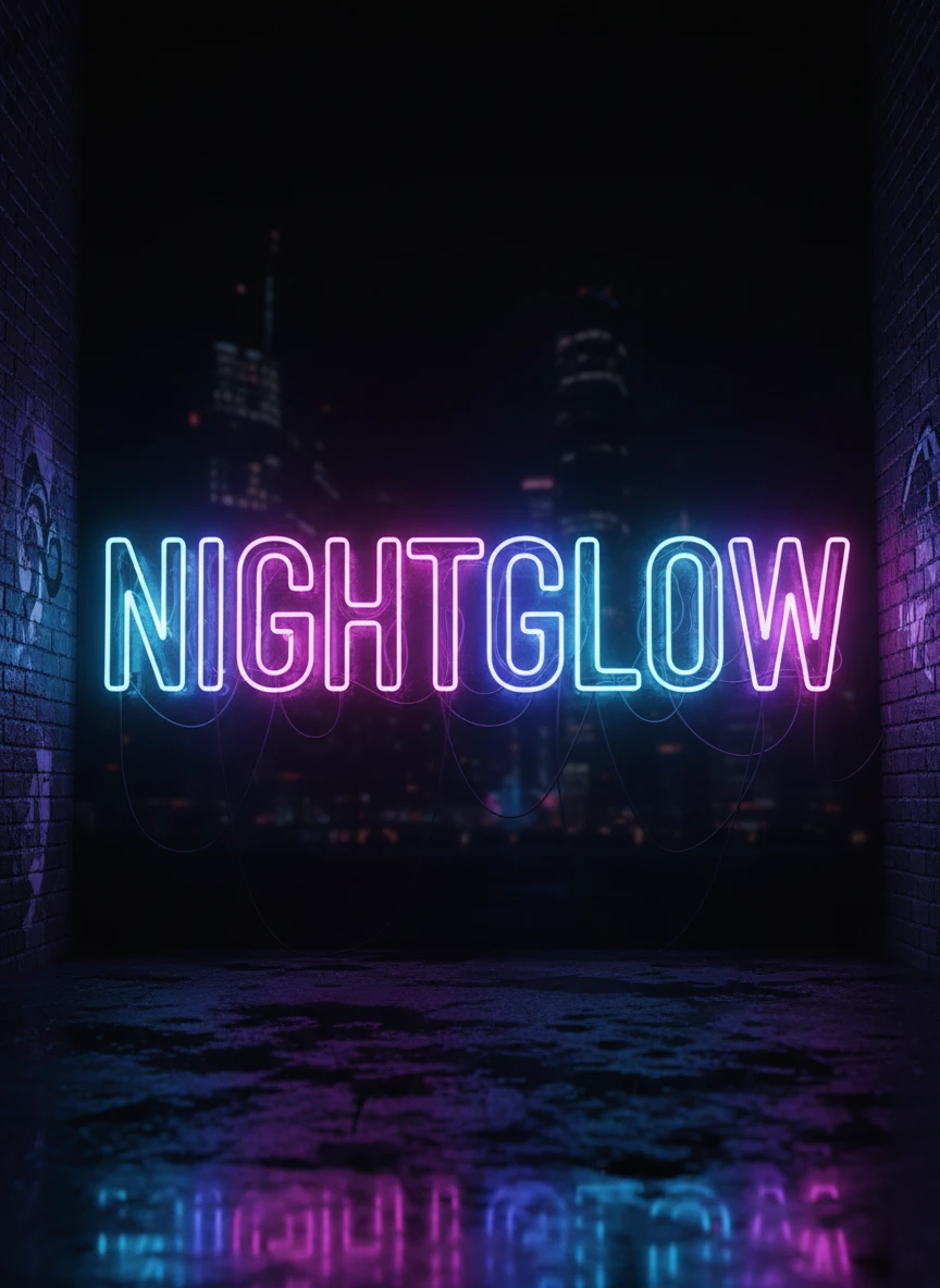 Produce a word art generator visual using neon-lit letters inspired by urban nightlife. The typography should glow vividly against a dark background, with subtle reflections and depth. Capture a modern, edgy street aesthetic. Style: neon, cyberpunk, urban typography NEG: dull colors, flat lighting, blurry glow, washed-out blacks, artifacts, incorrect spelling