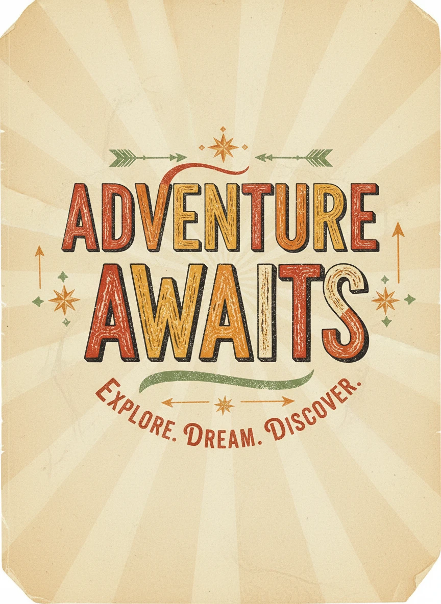 Create a word art generator design inspired by retro poster lettering from the mid-20th century. Use warm tones, textured strokes, and classic serif or script fonts. The overall feel should be nostalgic and print-like. Style: vintage, retro typography, poster art NEG: modern fonts, glossy finish, digital noise, sharp gradients, low resolution, random symbols